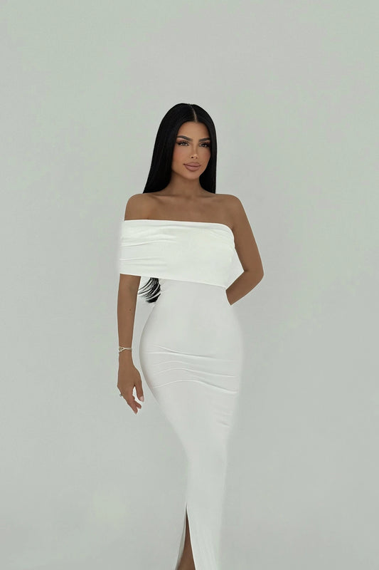 aWhite Velora Satin Dress
