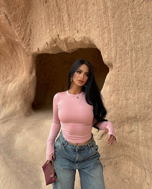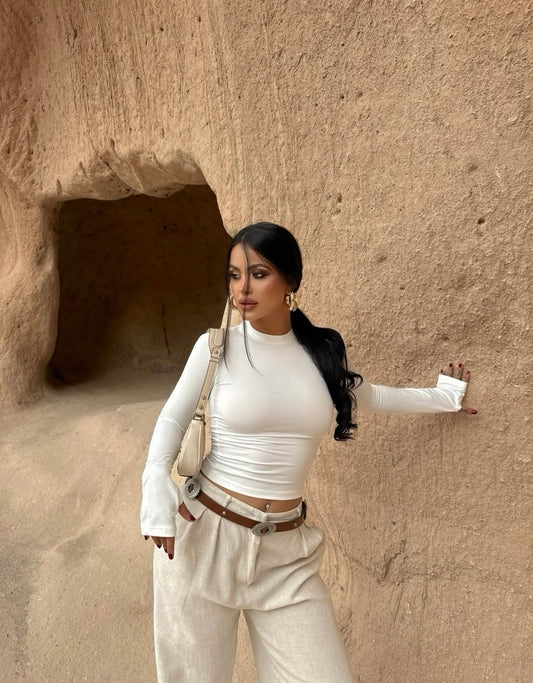 Beige Original Brand Modal Fabric Long Sleeve Top