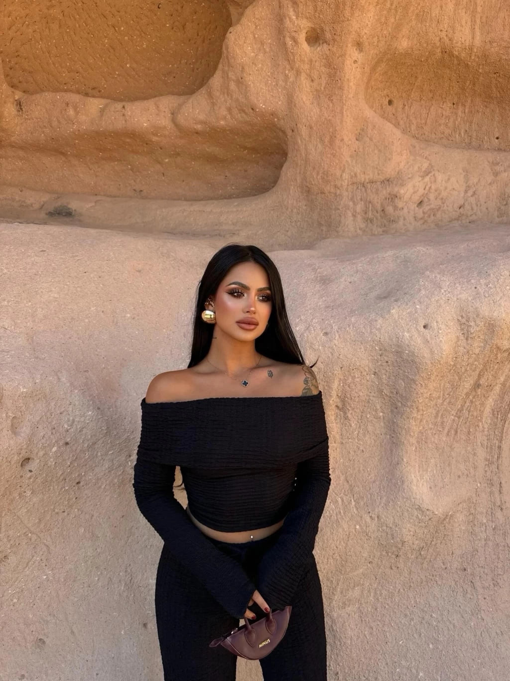 The Black Madonna Collar Bubble Suit offers elegance and comfort. this suit is ideal for special occasions and everyday wear.