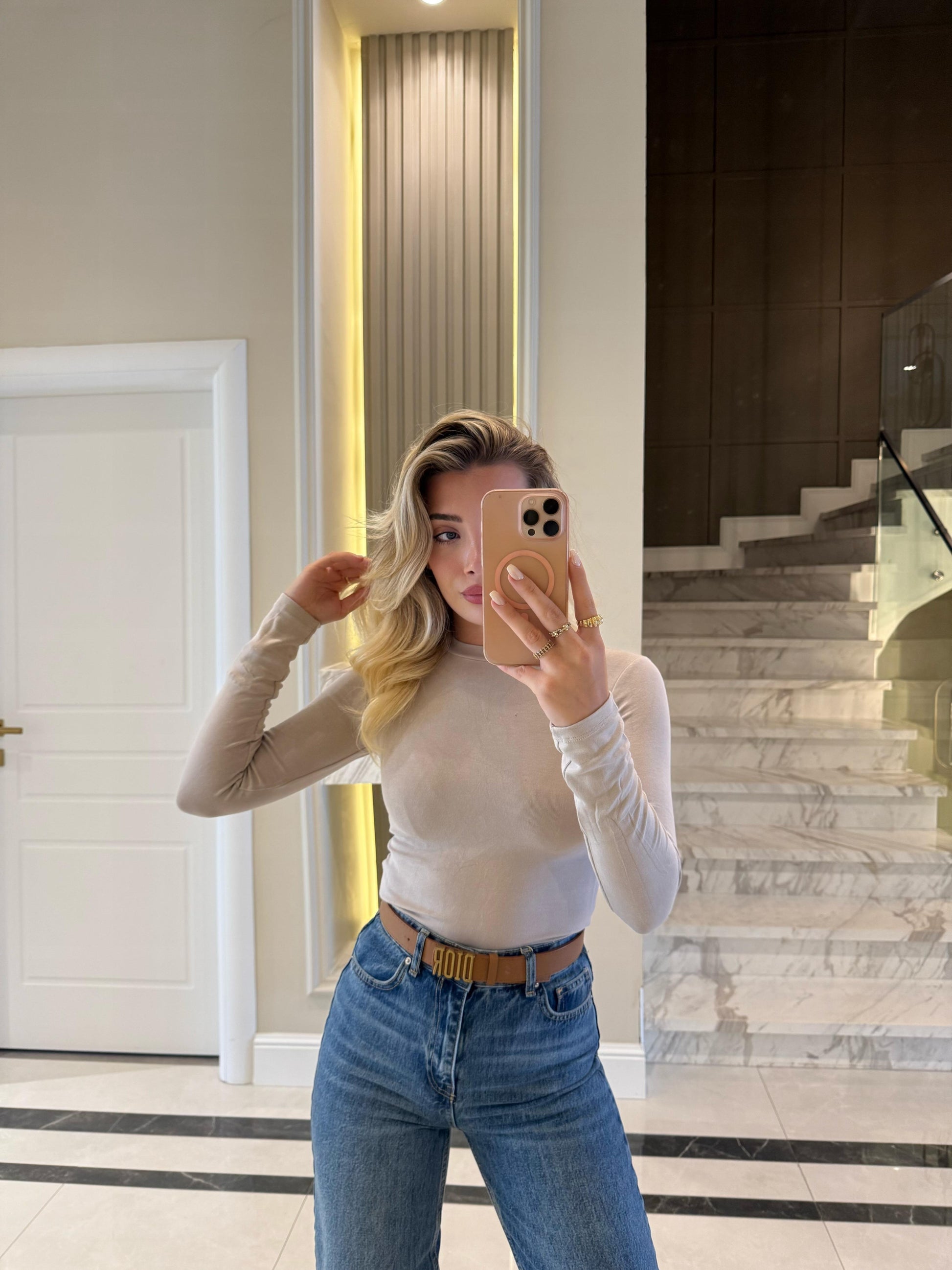 Beige Original Brand Modal Fabric Long Sleeve Top
